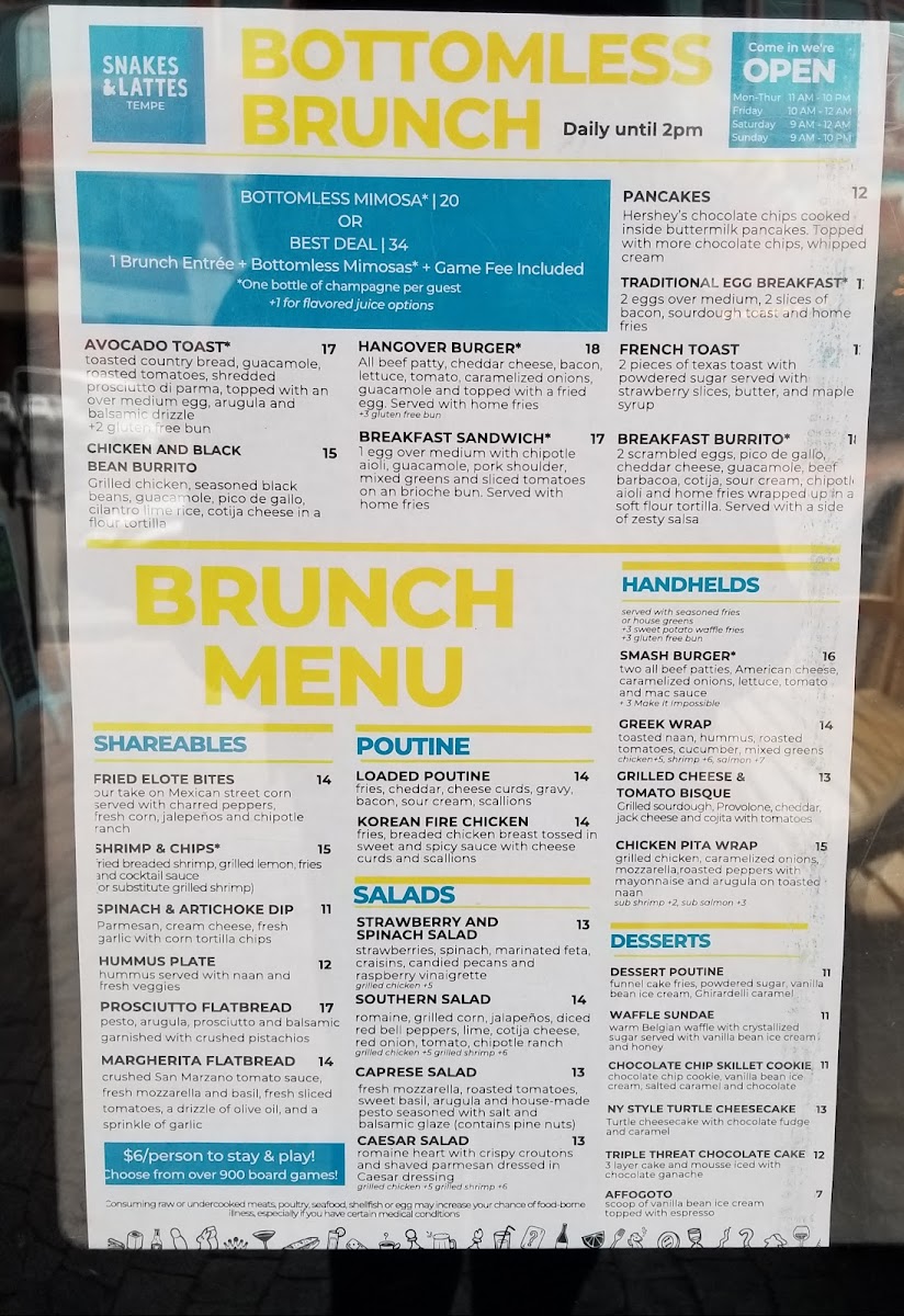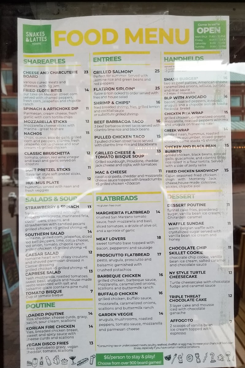 Welcome to Snakes & Lattes Tempe, a vibrant culinary haven at 20 W 6th St, where delicious food meets the fun of board gaming. This unique spot offers an extensive menu that ranges from shareable apps like the must-try elote bites to heartier options like their renowned macaroni and cheese and flavorful beef stroganoff. Each dish bursts with flavor, making it perfect for both casual diners and food enthusiasts alike.